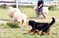 Bernese don't have the tight "eye" of the Collie or Kelpie, who use their unwavering predators' stare for control. Natural herding ability is a vital component of the herding dog. It is difficult to mechanically train a dog who has little instinct. The instinct has to be there, to be refined and guided by training. Learning to trust that instinct is as important as learning "away to me" or "go by."